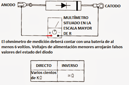 Cualquier lectura contraria a esos valores será un diodo con defecto y deberá ser cambiado.