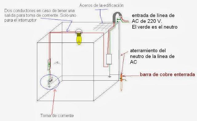 Cuando se trate de sistemas de 220 voltios con dos líneas vivas el neutro debe estar anclado al sistema de tierra y sirve como protección para situar, de forma obligatoria, interruptores que sensan un diferencial de cable alimentado, una carga y tierra.