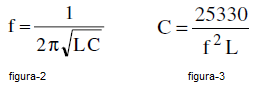 Conociendo el valor de la inductancia L y la lectura de la frecuencia en el dial digital es fácil calcular el valor bastante aproximado del condensador cerámico a medir o probar usando las siguientes fórmulas.